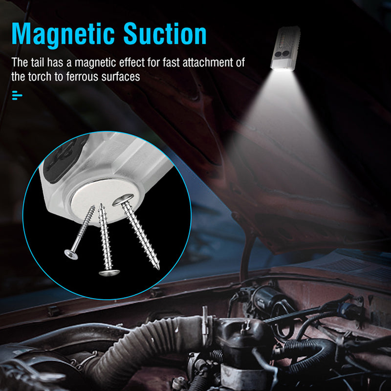 ღ Er du på utkikk etter en allsidig lommelykt? ❤ Denne modellen har magneter i bunnen for enkel feste og kan også festes til nøkkelringer. Den har flere sidelamper (hvit, rød, grønn, blå, gul), som gir røde lysblitser og strobemodi i rødt og blått.
