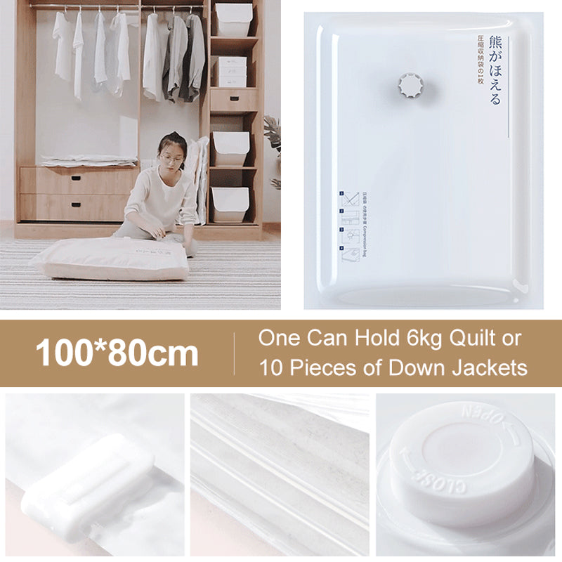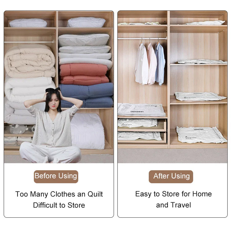 Materiale av Høy Kvalitet & Optimal Beskyttelse: Disse vakuumoppbevaringsposene er laget av PA- og PET-materialer. De er vanntette, slitesterke og kan gjenbrukes. De gir beskyttelse til klærne dine mot fuktighet, støv og ubehagelig lukt. Perfekte for studentboliger, flytting og oppbevaring i hybel.