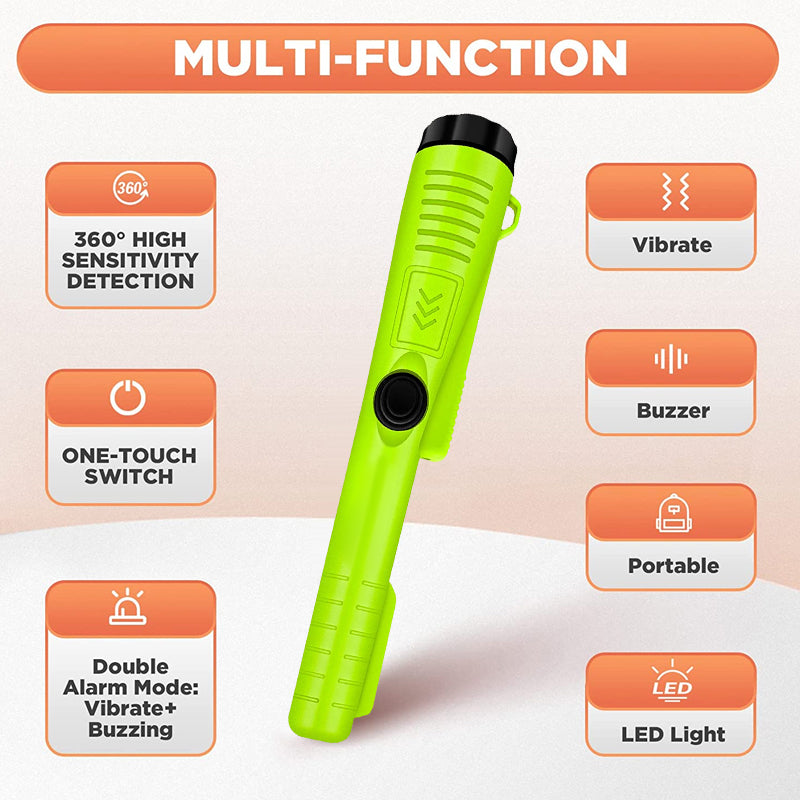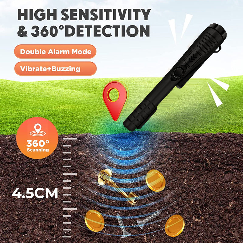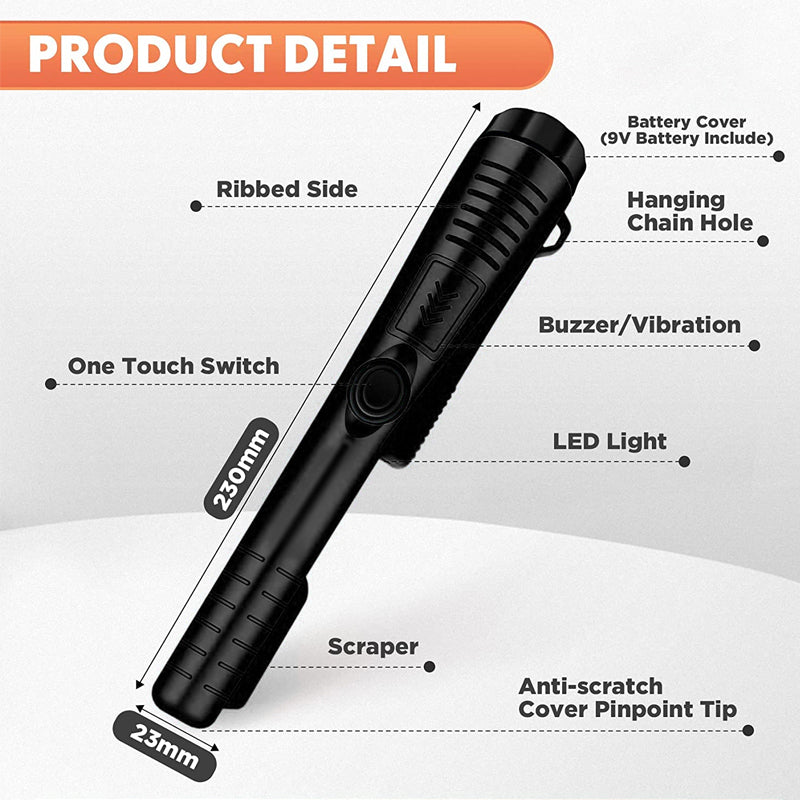 【Helt Vanntett Struktur】 Spissen av denne vanntette metalldetektoren er fullstendig tett mot vann. Uansett værforhold, inkludert kraftige regnbyger, kan du senke den vanntette pinpointer metalldetektoren ned i innsjøer, elver, dammer eller hav for å finne skjulte skatter under overflaten.