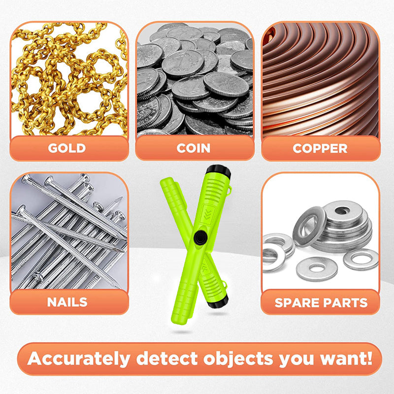 【Flere Bruksområder】 Denne pinpointer metalldetektoren er allsidig og kan finne mynter, gull, sølv, historiske gjenstander og smykker, noe som gir deg muligheten til å oppdage skatter eller tapte metallobjekter både innendørs og utendørs, enten det er i vegger, sand, gress eller jord, selv under ekstreme temperatursvingninger fra -35ºF (-37ºC) til 158ºF (70ºC).