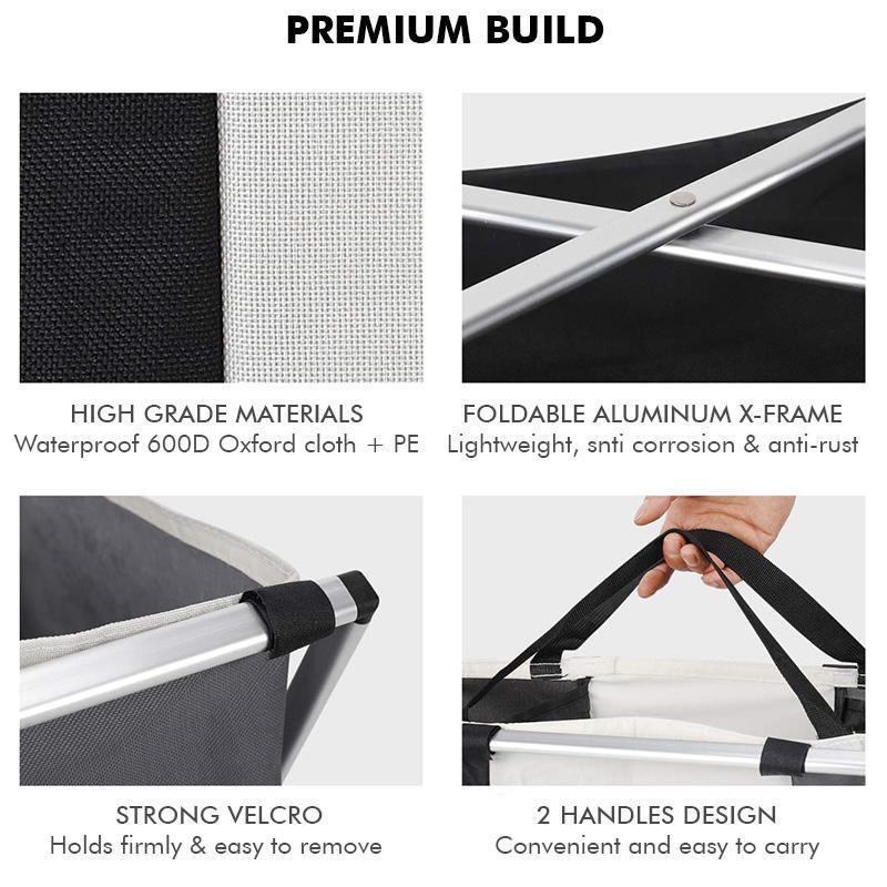 - Sammenleggbart. Trenger du mer plass? Bare ta ut stoffkurvene og brett opp rammen. Det kan foldes ned til omtrent en femtedel av den opprinnelige størrelsen for enkel lagring.