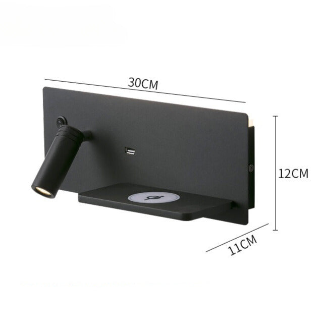 Moderne LED Vegglampe med USB-port & Hylle – Ideell for Soverom & Kontor | Vippbar Vegglampe med Trådløs Lading