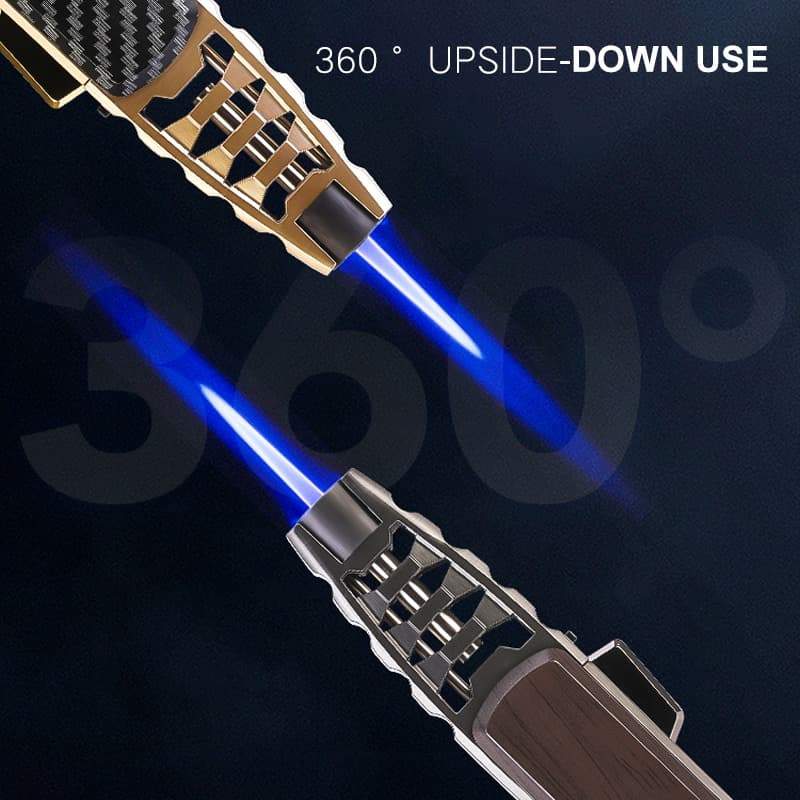 Denne justerbare butan-lighteren kan lett tennes og brukes 360° opp og ned. Den egner seg veldig godt til bruk som lighter til stearinlys, til å gjøre opp bål i villmarken, til grilling osv.