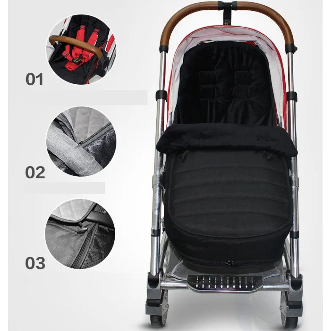 Du kjenner scenariet: bitske vind, frigid temperatur – og babyen din er urolig i vognen, rister eller er opprørt. Tradisjonelle tepper glir ofte av eller gir ikke tilstrekkelig dekning. Vår vintervognsovepose er her for å hjelpe! Med sitt gjennomtenkte design, snøring og vannavvisende stoff forblir babyen din sikkert pakket inn – noe som eliminerer behovet for konstante justeringer. Hver utflukt forvandles til et hyggelig vintereventyr.