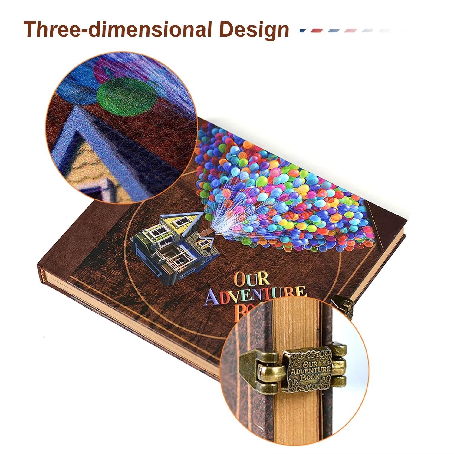 Hver bok leveres med Pixar UP film-tematiserte tilbehør, med én bok får du 8 postkort samlinger, fotohjørnestikere samt UP Russell og Carl karakter.