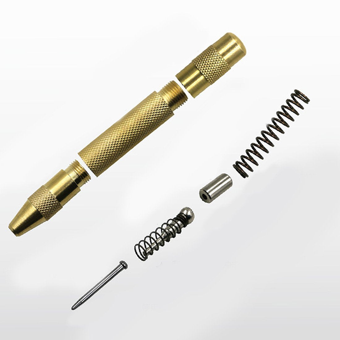 Merk eller stans hull automatisk i metall- og treskjemaer med dette verktøyet. Den kraftige fjærhandlingen vil slå et hull i materialene når den presses. Den varmebehandlede stållegertuppen og forkrommet spiss sikrer en ren stansing. Det rillete messinghåndtaket gir et stabilt grep. For disse enkle metall- og treskjemaene trenger du ikke å bruke bulke bor og ikke bruke mye strøm. Dette hullverktøyet sparer deg tid og penger mens du fullfører et prosjekt. Bestill dette verktøyet i dag!