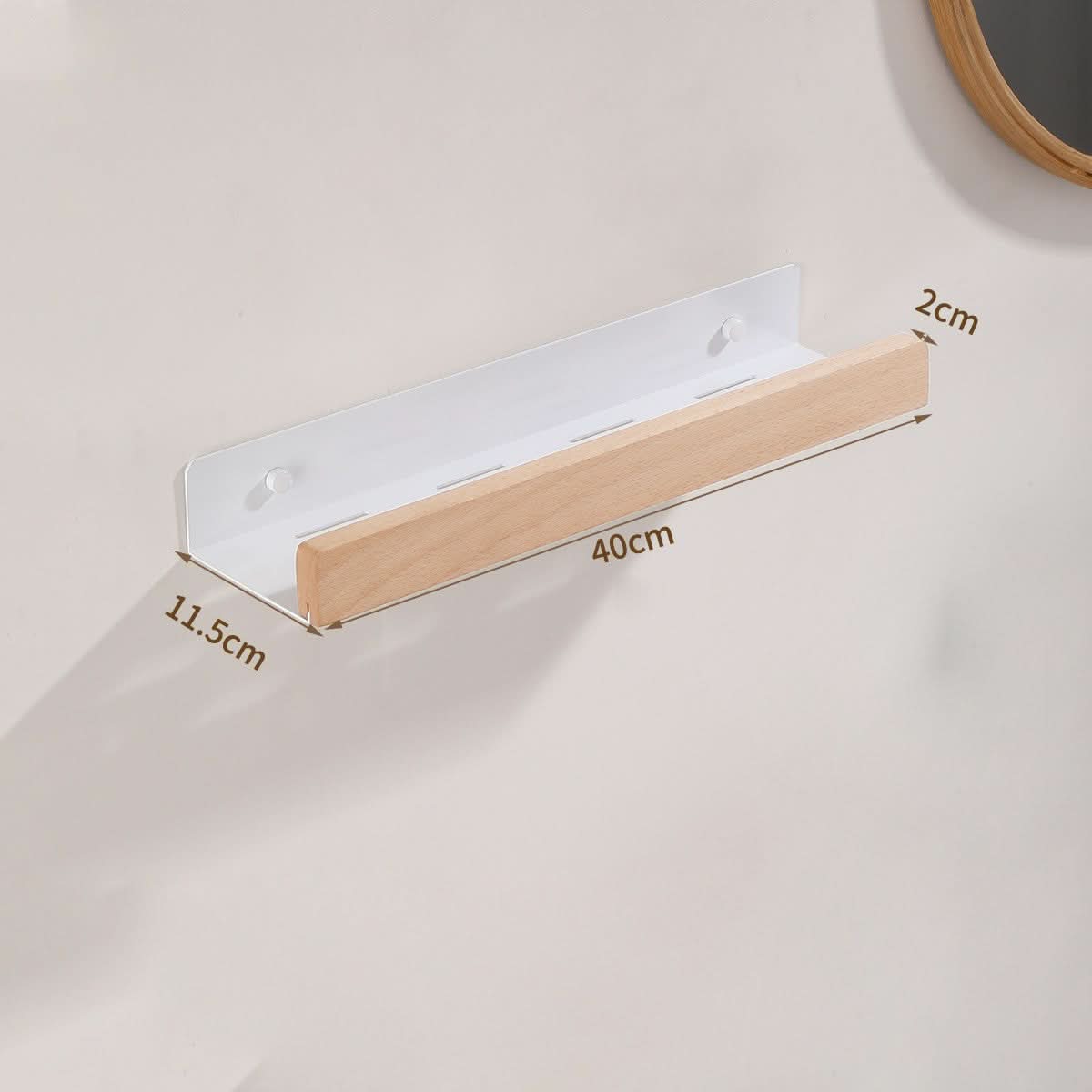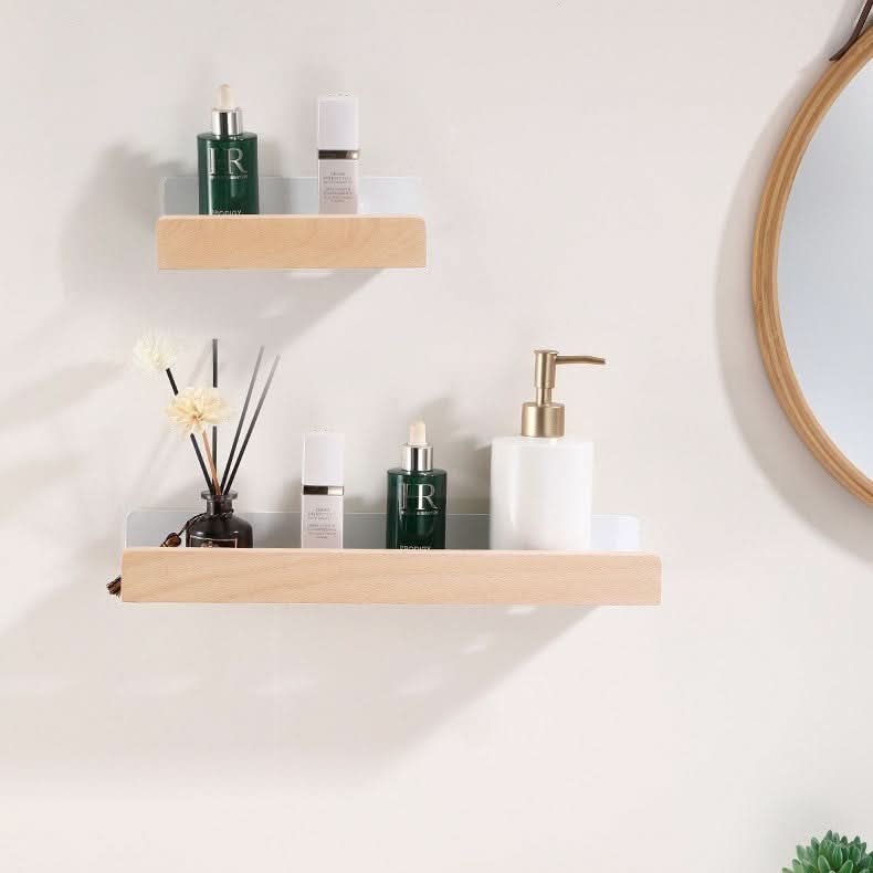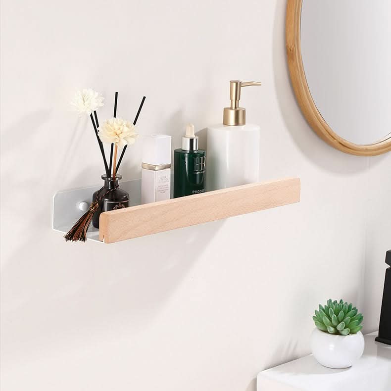 Norvo | Woodify Håndklestativ – Ingen-bore Vegghengt Dusjhylde med Treakenter