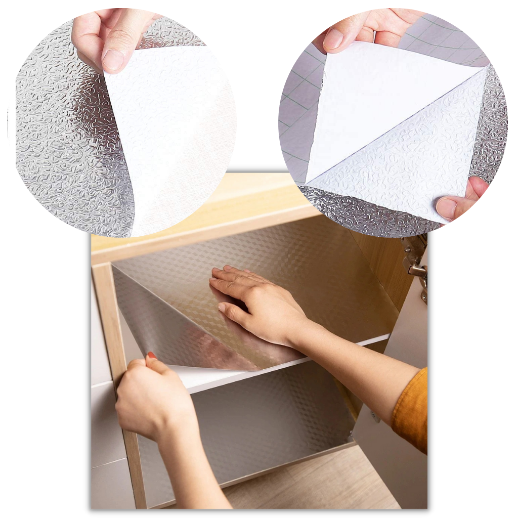 Dette tapetet er ikke kun designet til kjøkkenbruk, det er også egnet for alle møbler med flat overflate. Den er egnet for fliser og overflater med glatt latexmaling, glatt metall, glass, plast og polert tre. Hvis du ønsker å gjøre kjøkkenskuffer, garderober eller skap vanntette eller motstandsdyktige mot mugg og støv, ville dette være en kostnadseffektiv måte å gjøre det på.
