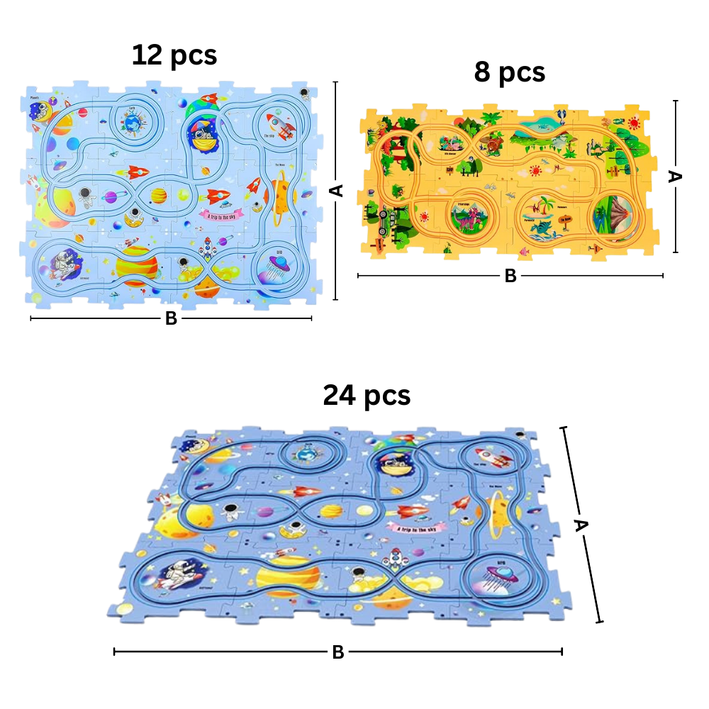 Det pedagogiske elbilbanesettet kommer i ulike spennende temaer, blant annet dinosaurer, skog, verdensrommet og havet, noe som sikrer at det finnes et sett som appellerer til alle barns interesser. De ulike temaene gir en rik og variert lekeopplevelse, slik at barna kan utforske ulike scenarier og miljøer. Hvert tema leveres med unike moduler og deler, som for eksempel temahus, broer og trafikklys, som kan settes sammen for å skape fantasifulle og detaljerte scener. Denne allsidigheten gjør at leken blir spennende og engasjerende, og oppmuntrer barna til å bruke kreativiteten og fantasien sin på nye og spennende måter.