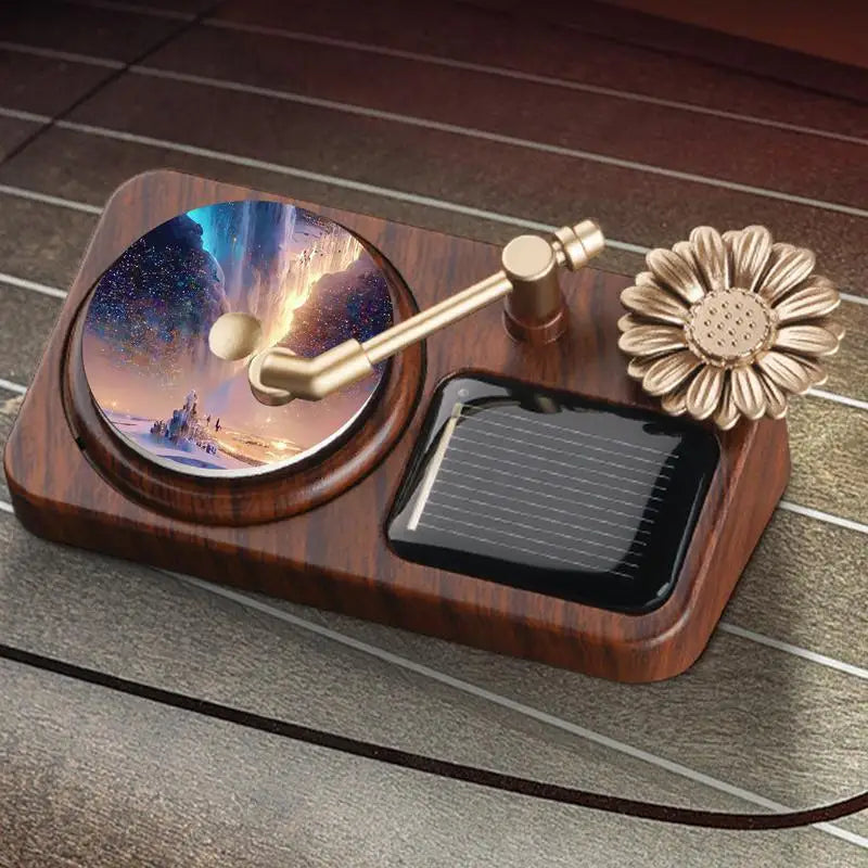 1x Roterende solenergidrevet retro platespiller bil-luftfrisker