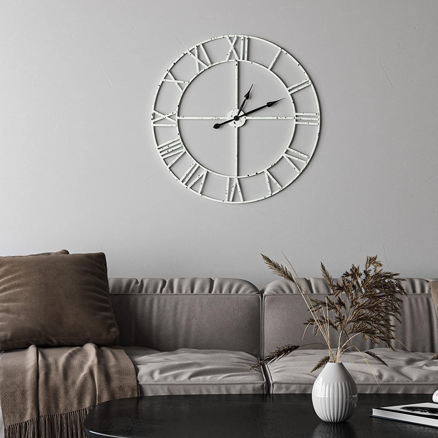 Denne veggklokken skiller seg ut med sitt unike design, som tilbyr en ideell blanding av tidløs og moderne estetikk. Hvis du ønsker inspirasjon til interiøret ditt, vil disse fleksible skjeletturene være utmerkede alternativer for ethvert rom i hjemmet ditt. Laget for å vare, er klokken laget av høykvalitets, solid smijern. Mål - 47 cm x 47 cm