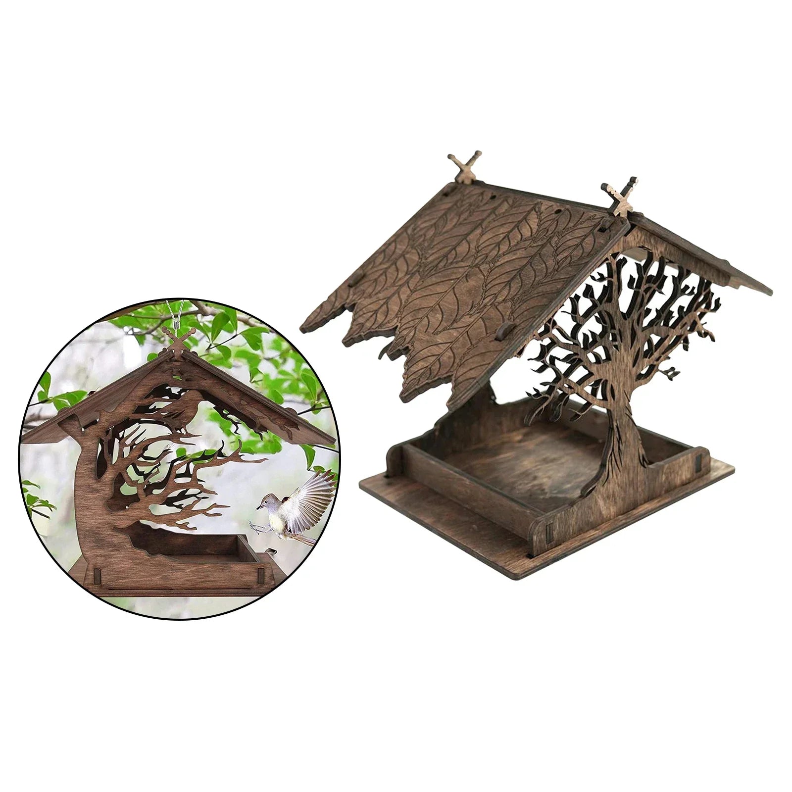 Dette rustikke trehuset for fugler tilfører en sjarmerende touch til enhver hage eller bakgård, designet for å tiltrekke seg ulike fuglearter samtidig som det beriker din utendørs dekor. Laget av kvalitets tre, har denne fuglemateren et kreativt trehusdesign som ikke bare ønsker velferdsbesøkende velkommen, men også gir et rustikt preg til ditt utendørsområde.