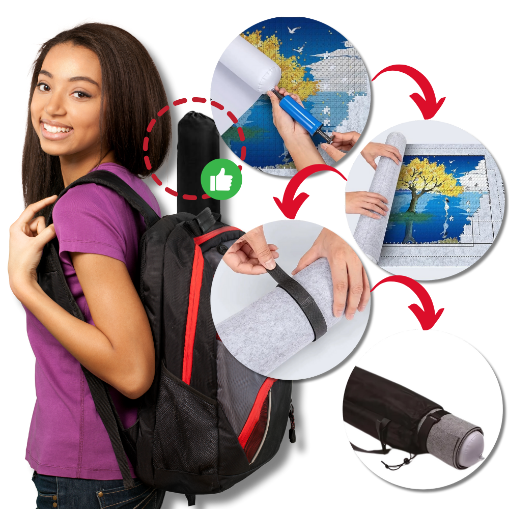 Rullbar Puslespillmatte i Filt har kapasitet til å håndtere fra 1500 til 3000 brikker og kan lett rulles sammen for å bevare puslespillene dine trygt og ryddig - ideell til hjemmebruk eller når du er på farten.