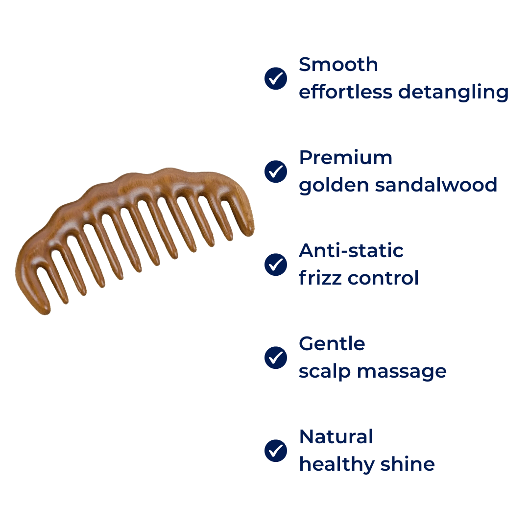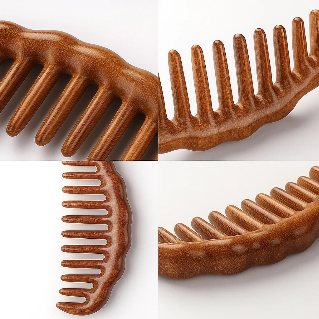 Den nyeste innovasjonen innen hårpleie med SandalSilk Tre Breite Zähne Hårkam fra Norvo. Lagd av førsteklasses gylden sandeltre og produsert med den mest moderne teknologien, er denne kammen designet for å tilby bruddfrie oppsett og samtidig fremheve hårets naturlige, sunne glans.