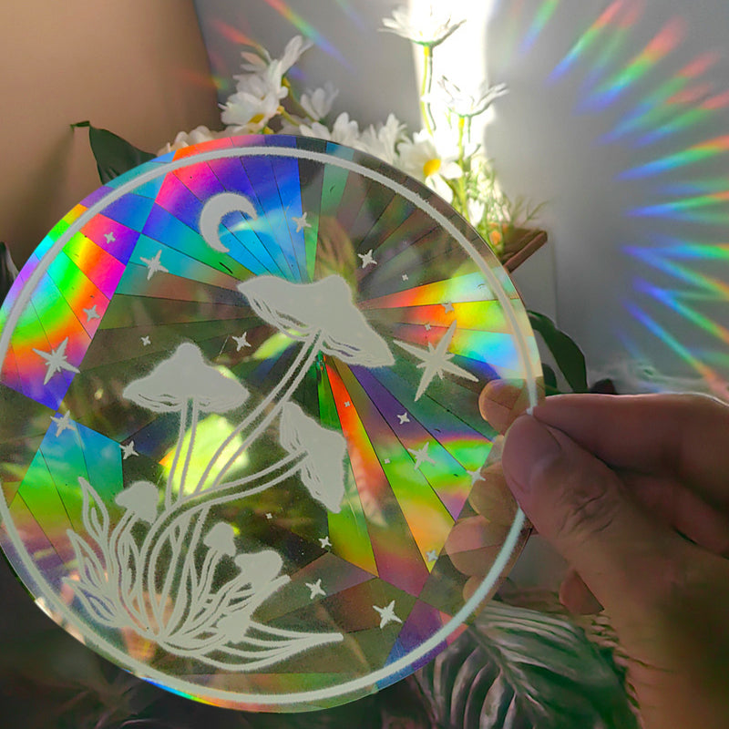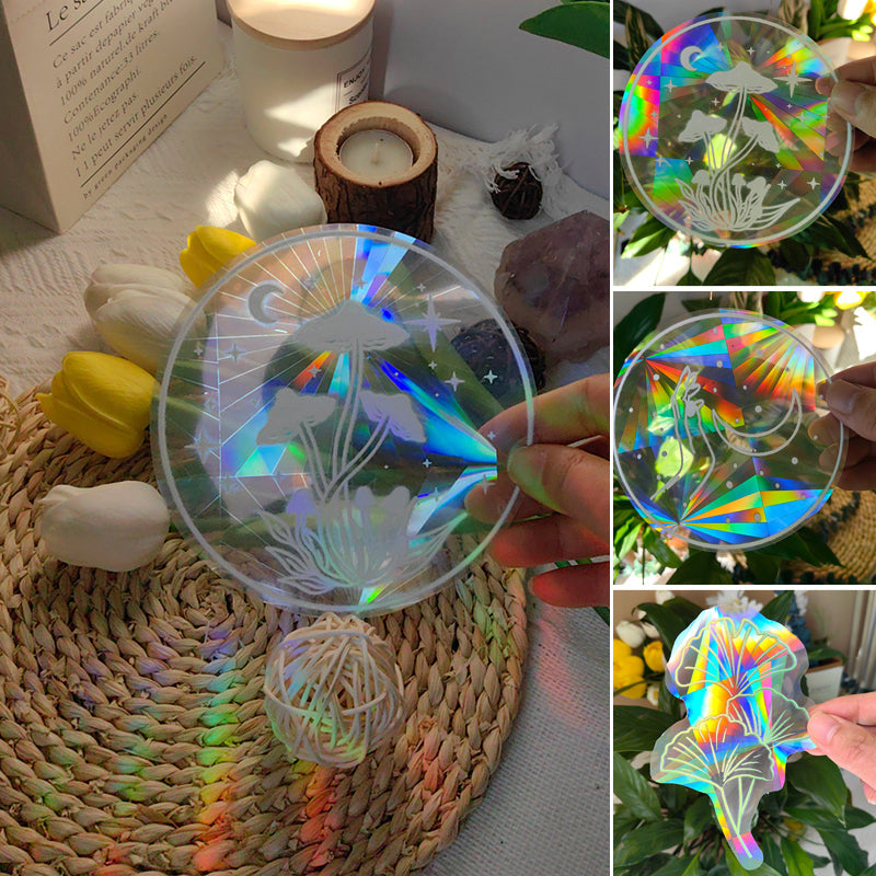 Fargerike, levende solfanger klistremerker som skaper fantastiske regnbueeffekter i sollyset, ideelle for å gi et løft til ditt hjem.