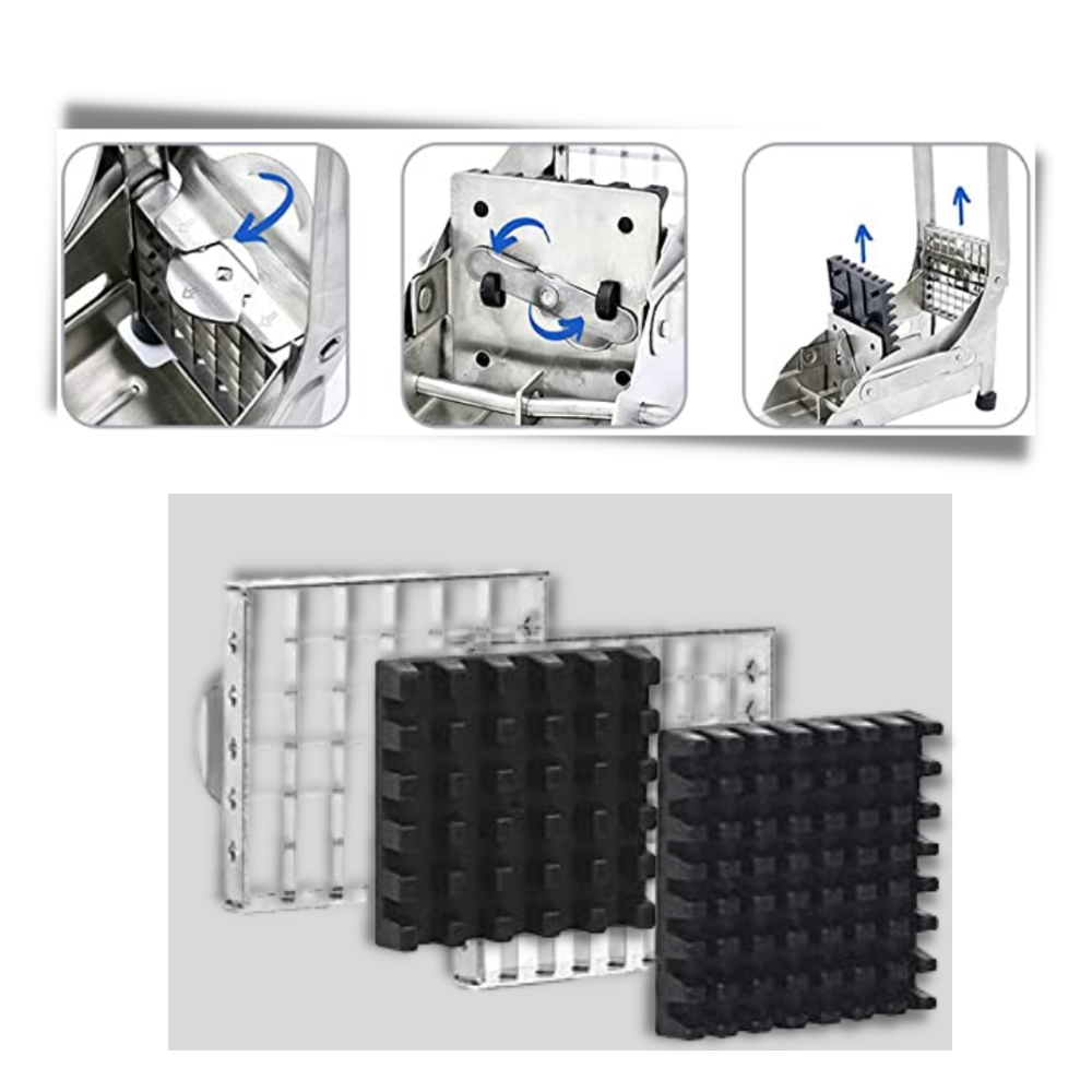 Dette skjæreverktøyet er laget med materialer av høy kvalitet som sikrer at det er svært varig. Bladene til denne pommes frites kutteren er veldig skarpe, så du vil være i stand til å kutte enkelt. Bladene er også utskiftbare, så i tilfelle de går i stykker, vil du enkelt kunne bytte dem ut.