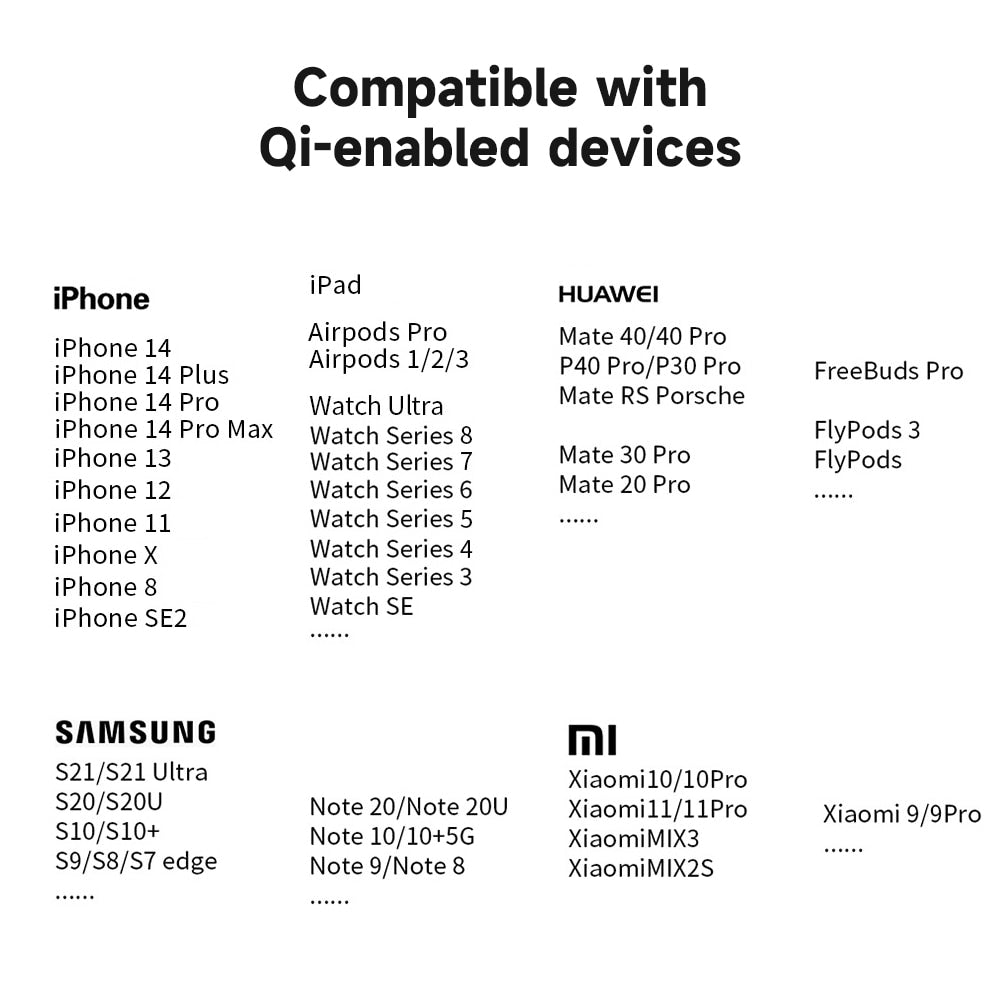 Den ideelle løsningen for å lade alle enhetene dine på ett sted. Med en effekt på 15W kan denne ladestasjonen lade iPhone, iPad og AirPods samtidig. Den har også innebygd lading for Apple Watch, slik at du kan holde hele ditt økosystem ladet og klart til bruk. Det elegante designet ser fantastisk ut på ethvert skrivebord, og basen sikrer at enhetene dine forblir trygge og stabile. Uansett om du er hjemme eller på kontoret, er Desktop Powerhouse den perfekte metoden for å holde deg ladet og tilkoblet.