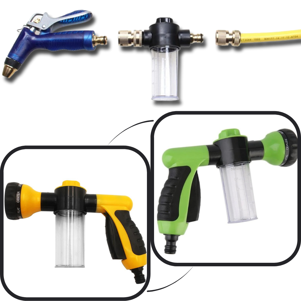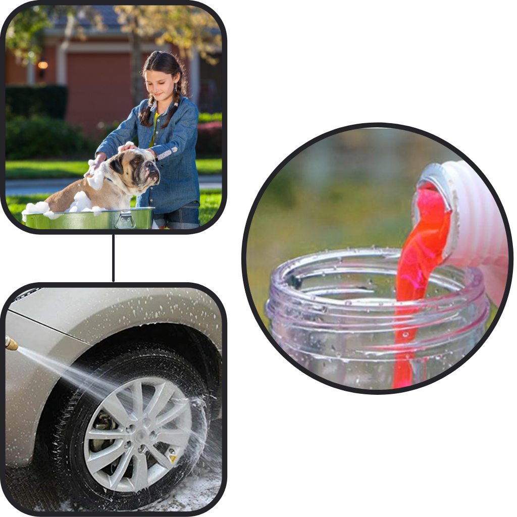 Denne såpeskumflasken er designet til mer enn bare å vaske bilen din, den kan også brukes til å bade kjæledyrene dine eller vanne plantene dine. Tilsett din favoritt kjæledyrsjampo for å rengjøre hunden din, eller pesticid eller gjødsel for å få hagen din til å blomstre. Mulighetene er uendelige! Denne såpedispenseren er egnet for en 25 mm vannpistol med grov tråd og perfekt til ulike bruksområder.