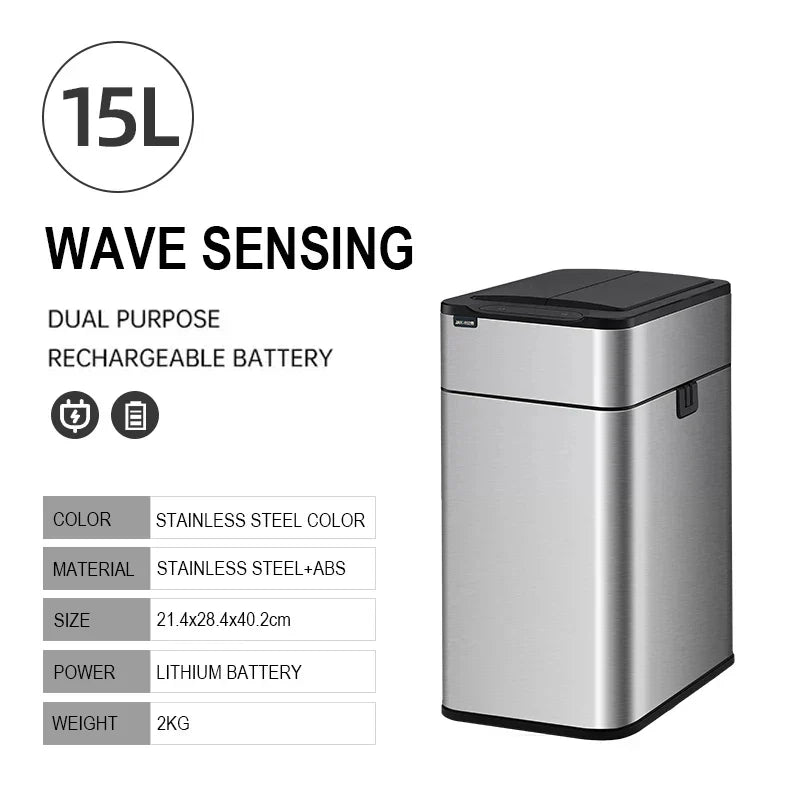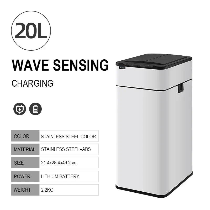 Oppretthold renheten og hygienen i rommet med vår Smarte Rustfrie Stålvasker med Automatisk Sensor. Denne stilige, moderne søppelbøtten åpnes automatisk med en enkel håndbevegelse takket være den innebygde sensoren, noe som minimerer kontakten og hjelper til med å hindre spredning av bakterier. Med sitt elegante design i rustfritt stål passer den perfekt inn i ethvert rom.