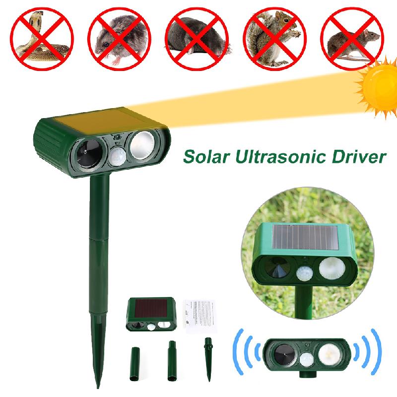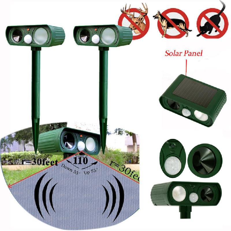 Menneskevennlig repellent for dyr: Inneholder ingen skadelige kjemikalier eller pesticider, kvitter seg med skadelige skadedyr og dyr ved å sende ut ultrasoniske bølger og sterke blink, trygt for mennesker og kjæledyr.
