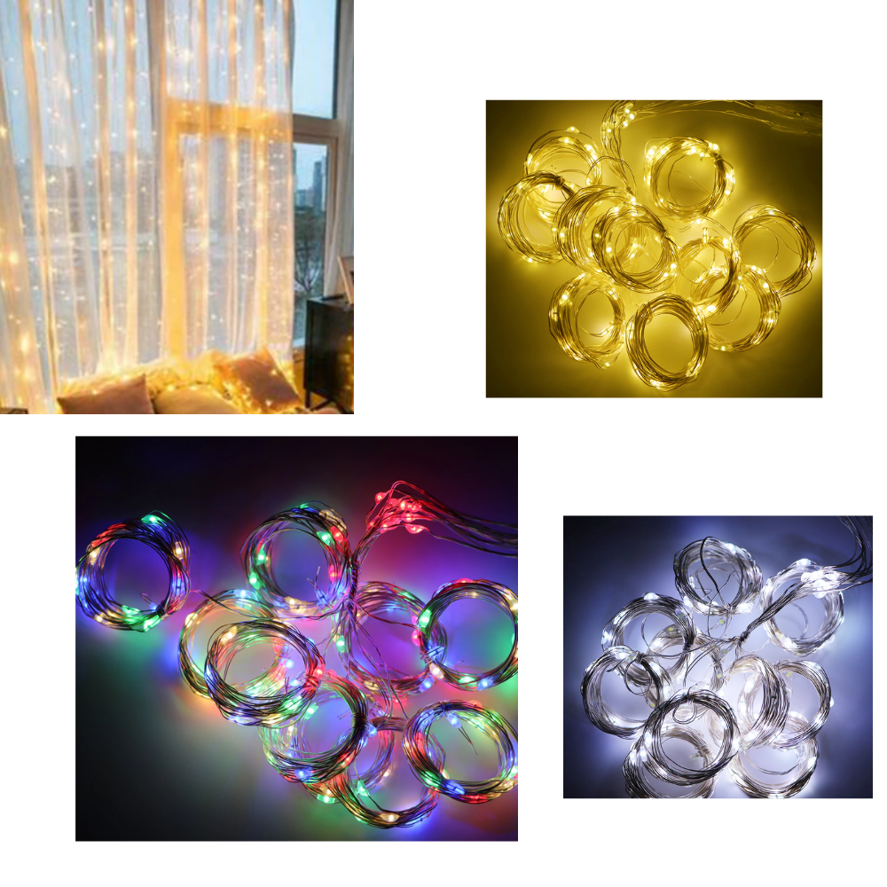 Det er også et utvalg av forskjellige lengder. De kommer i en bredde på 3 meter. Men du kan velge en lengde på 1, 2 eller 3 meter, avhengig av hvilket fall du trenger. Og siden kobbertrådene er så fleksible, trenger du ikke engang å henge dem. Hvorfor ikke bruke LED-lysene til et annet prosjekt? Du kan la kreativiteten blomstre fritt! Vri dem rundt en potteplante. Eller kle noen hyller med dem. Bare fantasien din setter grenser!