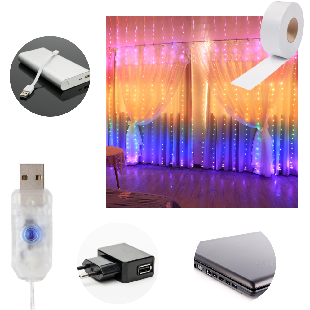 Denne gardinen av eventyrlys er enkel å installere. Den er veldig lett, så du trenger ikke å installere kraftige kroker eller lignende. Du kan feste den til gardinstangen med tape, eller til toppen av vindusrammen. Rull ut de tynne kobbertrådene med LED-lysene og la dem henge ned. Gardinen har en USB-plugg for å drive LED-lysene. Merk: strømadapter er ikke inkludert. Bruk en ekstra telefonadapter, eller koble den til en strømbank eller bærbar USB-port. Kobbertrådene varmes ikke opp, selv etter konstant bruk. Så denne strenggardinen er trygg å montere mot gardinstoff eller på barnerom.