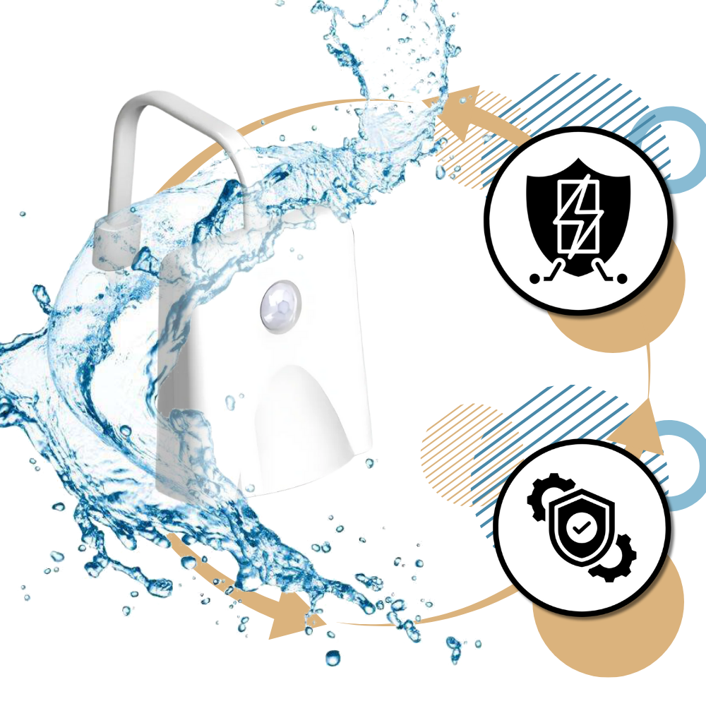 Toalettlyset med bevegelsessensor er laget av ABS og PVC-materialer, og er designet for å klare fuktige baderomsforhold og utilsiktet sprut, selv om det ikke er laget for full nedsenking. Overspenningsbeskyttelse (ved 4,2 V) og lavspenningsbeskyttelse (ved 3 V/16uA) bidrar til en lang levetid og sikker drift. Disse nyttige funksjonene gjør det til et utmerket valg for daglig bruk på badet, med pålitelig ytelse i et kompakt design.