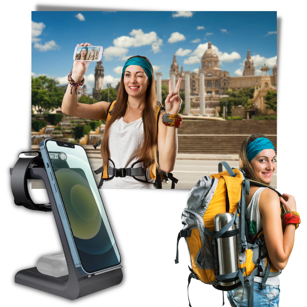 Ofte kan du bare bruke telefonladere til én bestemt telefontype eller merke om gangen. Dette er nesten alltid på grunn av de forskjellige telefonens ladeporttyper. I motsetning til disse tradisjonelle laderne har imidlertid denne trådløse ladedokken en multifunksjonell design. Dette betyr i bunn og grunn at du kan lade telefonen, AirPods og smartklokken dine samtidig! Hva er mer, du kan også bruke den til å lade telefonen din, uavhengig av om det er en Samsung, en iPhone eller et annet merke.