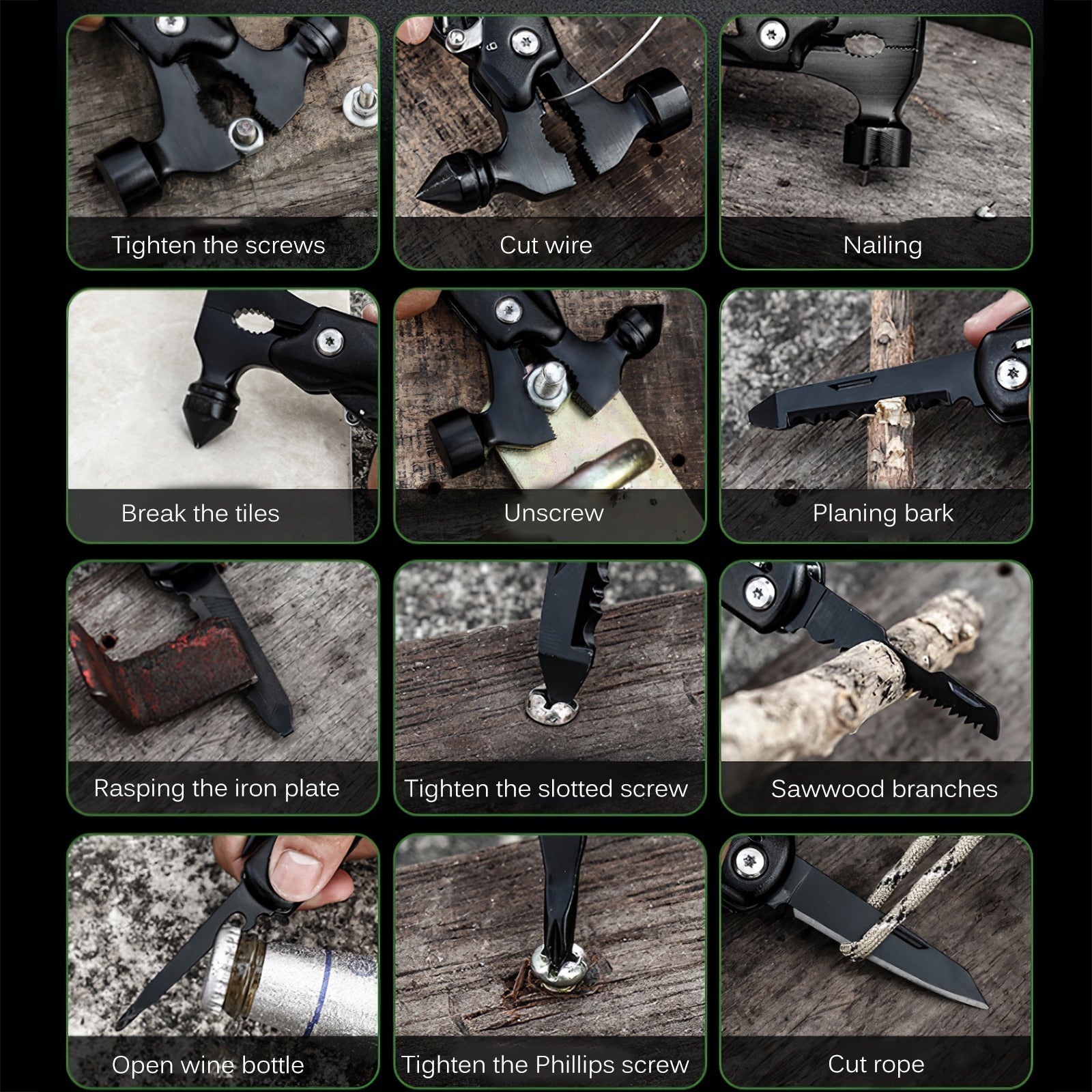 Det ideelle verktøyet for utendørs multifunksjonell overlevelse er perfekt for alle som elsker friluftsliv. Takket være sitt fleksible design kan det brukes til mange oppgaver, som camping, fotturer og mye mer. Laget av høykvalitetsmaterialer, er dette verktøyet konstruert for langvarig bruk.