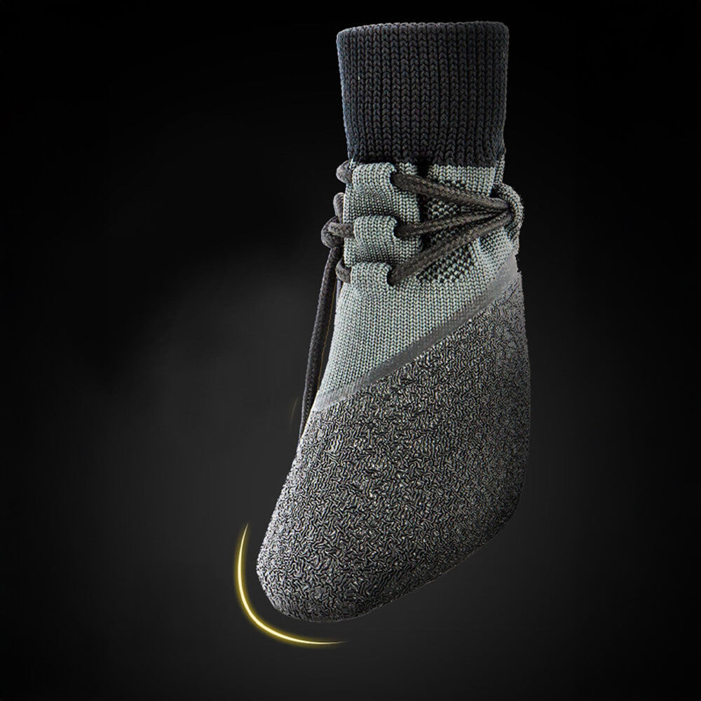 - Komfortabel & Fleksibel: Det myke og bøylige materialet tilpasser seg tett rundt hundens poter, og gir en naturlig gåopplevelse uten å hindre bevegelse.
