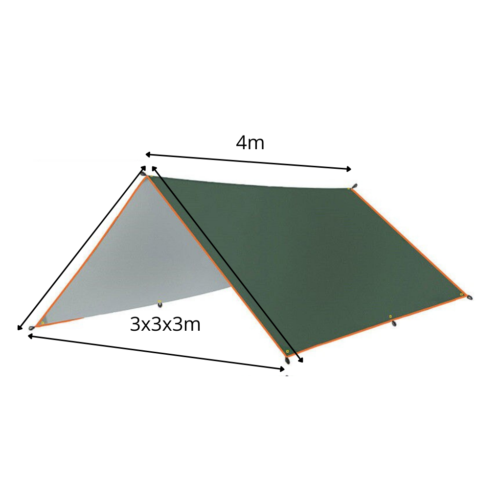 Denne campingpresenningen kan monteres på få minutter. Den leveres med et komplett sett for å slå opp et midlertidig campingtelt mens du tar en pause fra fotturer eller svømming. Settet inneholder en presenning, bæreveske, 1,8 meter lange stenger, presenningssnorer og plugger.