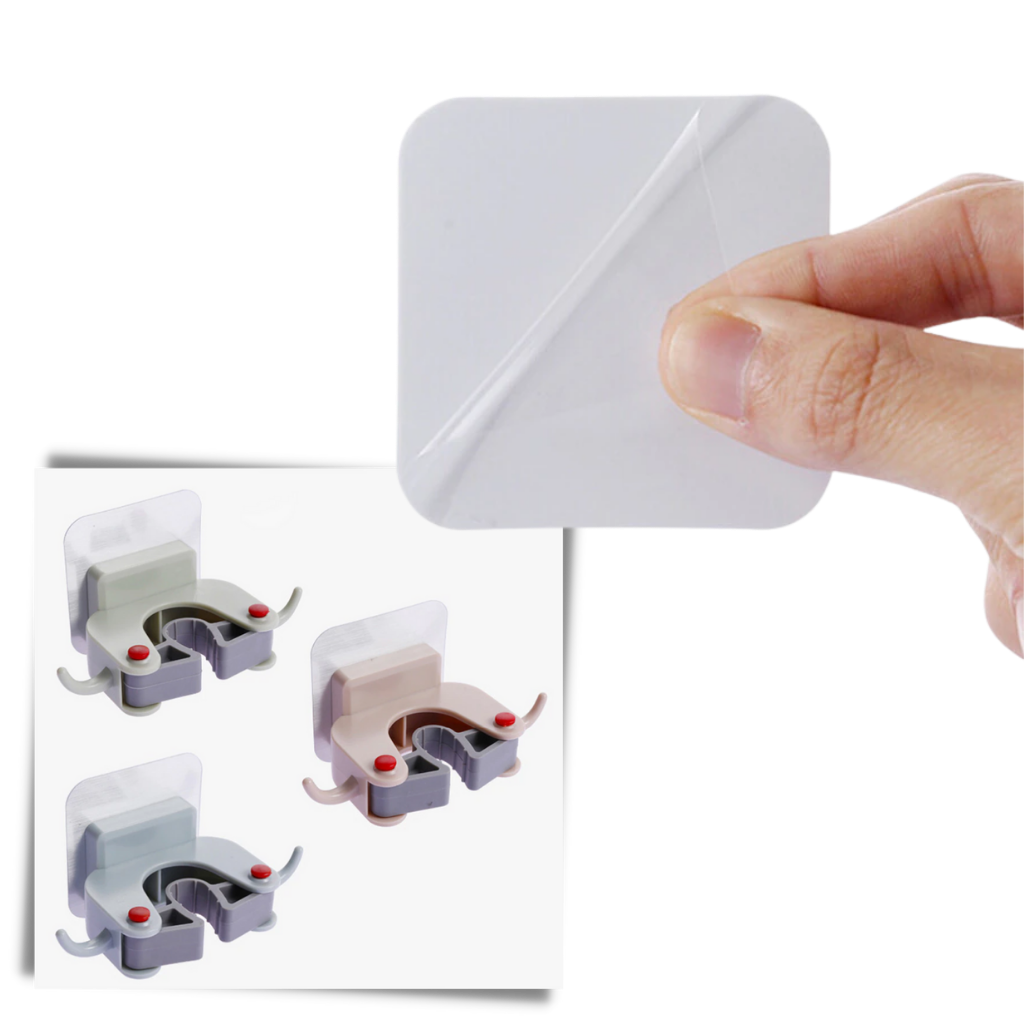 Den selvklebende stripen vil feste seg til enhver glatt eller lett strukturert overflate. Installer flere kosteholdere i vaskerommet eller et annet praktisk sted i hjemmet ditt.