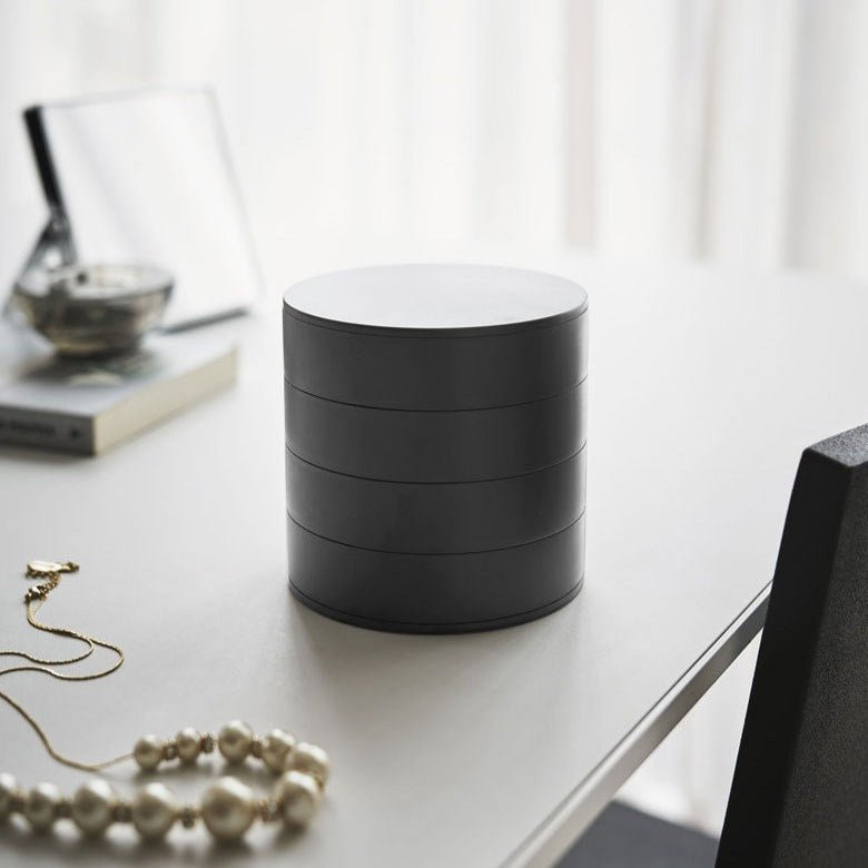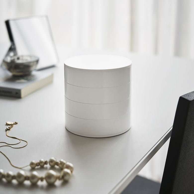 Vi er glade for å presentere Twist Around Smykkeorganisatoren, en moderne og funksjonell løsning for smykkeoppbevaring. Den har fire nivåer av oppbevaringsrom som effektivt oppbevarer smykkene dine, unngår sammenfiltring og gir deg lett tilgang. Det stilige, runde designet gir et sofistikert preg til ethvert rom. Forbedre dine oppbevaringsvaner med denne essensielle organisatoren for tilbehør.