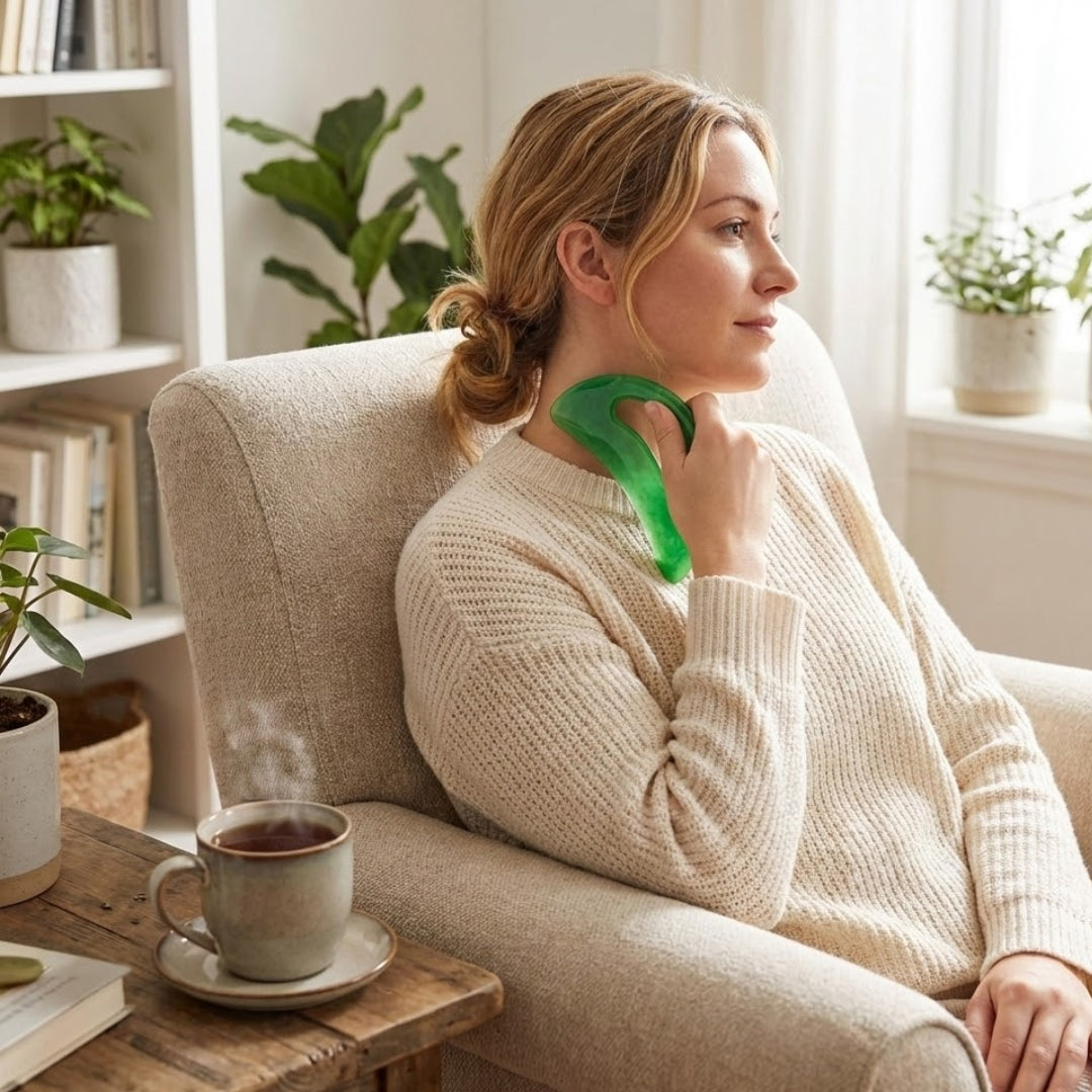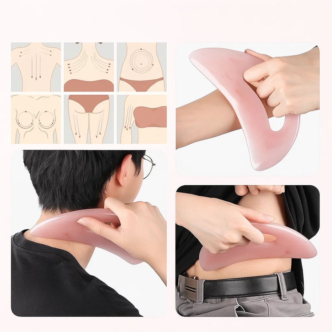 Med den nyeste teknologien innen velvære, gir WellEase Kropps Gua Sha Massasjer - Lymfatisk Drenering - Holdbart Harpiksverktøy - Reduserer Muskelspenning & Ømhet - Avslappende Bruk for Hele Kroppen en jevn, beroligende bevegelse over huden for å målrette spenninger i ryggen, skuldrene, bena og mer. Dens komfortable, lette håndtak sikrer enkel håndtering, mens den ultra-polerte overflaten gjør den perfekt for daglig massasje uten å irritere huden.
